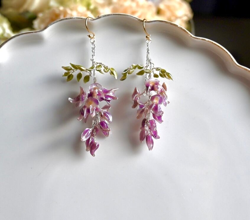 そんな藤の花の魅力をアクセサリーにできたらという想いで製作しました。